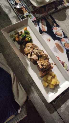 The location for K Resto is really good. Just pass by all the other restaurants on the beach in front of the double six until you get to it. You have a choice of sitting at a table under a large shade cloth but we prefer to sit on the comfy beanbag chairs with low, wooden tables directly on the beach in front of the entertainment. The beanbag chairs are good quality and have a back you can lean against. The shade umbrellas are both beautiful and fun to look at - they are lit up at night. In front is a swing set that is brightly lit. There is live...
