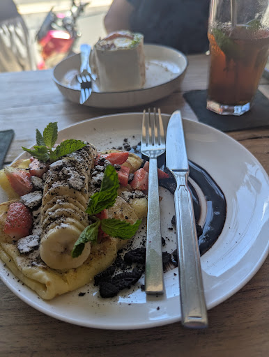 Absolutely our favourite place in Bali. The crepes I got only cost 45k which is just under $4.50 AUD. I couldn't even buy an iced coffee in Aus for that. And here I get crepes that look and taste delicious. It's pretty hard to be upset by that! There is some noise as they are on the road but we can still talk and have a good time.