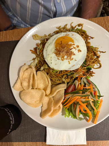 I ordered the mozzarella and tomato salad. I asked if it was buffalo mozzarella and was told yes. I also asked to add a side of grilled chicken breast. The cheese was not buffalo. It wasnāt hard but it was dry and grainy. The chicken they brought was three very thin, narrow, short slices of what looked more like lunch meat. Also very tasteless. (At least they only charged 20k IDR ~ 1.25 USD.)