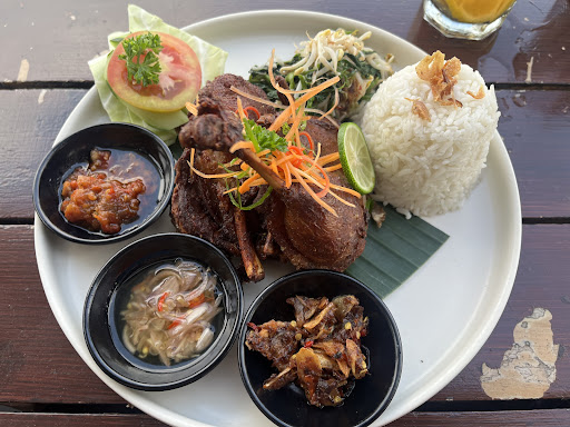 Read moreI came here for a late lunch after seeing the good reviews and consulting their menu, where the Bebek goreng (fried duck) was a staple dish. The views from the rooftop are stunning and the restaurant is in of the best locations within the Beachwalk shopping center. The service is friendly and forthcoming. The restaurant is a bit hard to find though but it’s definitely worth the extra effort. The food was great. I ordered the duck (bebek goreng 🦆) and pork skewers. The duck was the star of the show but the skewers didn’t disappoint either. The bebek comes with a nice set of garnishes, sambals and dips, which add freshness to the savoriness and richness of the bird. Notably, this duck is smaller than what you get when ordering half a roast duck in Germany or in a Chinese restaurant for that matter. However, it is seasoned differently, with more character and refinement, while still retaining the crispness of the skin and slight gaminess of the meat. The portion sizes are ok, maybe a tiny bit on the small side but the prices are appropriate for what you get (actually pretty fair given the location...