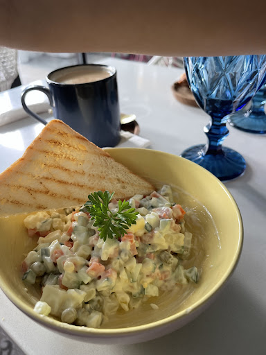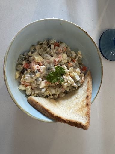 Unfortunately, we were really disappointed. The food wasn’t tasty at all. We ordered the Salad Olivie and the chicken pelmeni. Usually, the portion sizes are similar, and we’ve never been disappointed with Russian food so far — but this time it was really unpleasant. We can’t even say exactly what was wrong with the salad, but it didn’t taste like Olivie at all. Same with the pelmeni — and on top of that, you even had to pay extra for the sour cream!