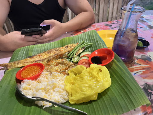 Came here based on review and it didn’t disappoint. The wait was about 15 min due to the grilling time . The weather was warm and humid at 7ish when we arrived . The place could do with at least a fan as it was warm whilst waiting . Luckily the breeze came on a little bit to dissipate the heat under the roof ! The spicy fish was beautifully grilled to perfection - it was marinated in tumeric , sambal . With a dash of lime , it was perfect. The nasi & corn was organic . The cabbage cooked in tumeric , candlenut & other herbs is very delicious - again this veggie was cooked to perfection ! The entire set dish came with raw long beans , come cucumber & tomato , all served on banana leaf which according to the owner, the leaf releases something that will reduce inflammation when the leaf is in contact with heat . I notice from the menu , this small family - run little warung is health conscious based on the presentation and selection. Upon talking to owner wife , she said the receipt is passed down from the family and she serves only organic rice & corn. Their aim is to serve healthy food . I love this place and hope people will come and try to support this family run small business . A set fish and pea flower drink cost about 10,000rp , a small price to pay for. Healthy delicious meal ! Do yourself a favour and...