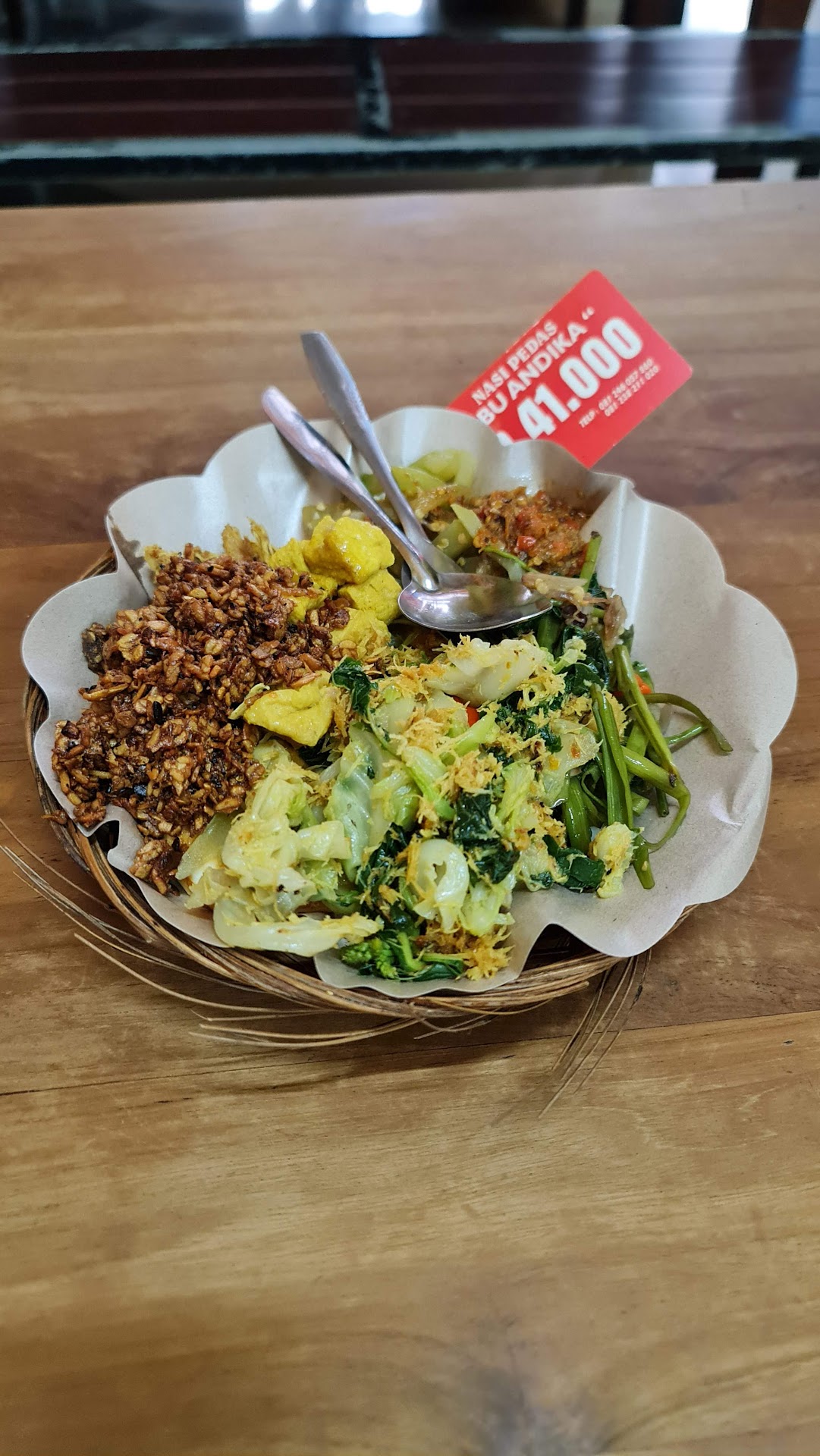 Nasi Pedas Bu Andhika is a culinary gem that keeps drawing me and my husband back every time we visit Bali. Despite the island offering numerous variants of Nasi Pedas, there's something uniquely appealing about Bu Andhika's version that resonates with our taste buds.