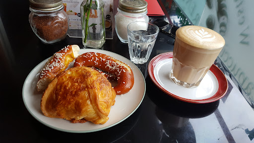 Read moreMy wife and I love this place, we had our first visit today. Firstly, the bakery itself is stunning and has a large selection of cakes, breads and pastry items on display which look scrumptious; they almost look fake they're that perfect. I had a latte and a large pretzel and they were both great quality. My wife had a watermelon fruit juice and a pretzel and was very happy with them both. The staff were great to deal with and had great smiles; they even indulged my, probably annoying, request for 100 rupiah coins in my change which I asked for as a token to give to my friend who collects coins. Overall a very enjoyable experience and I'll be going back for breakfast tomorrow. Most importantly, the prices...