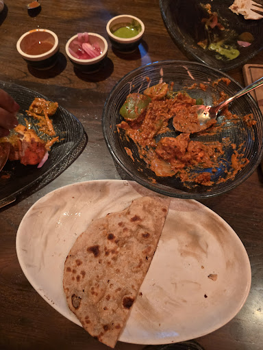 My Indian partner and I eat at Indian restaurants quite a bit. Hereās our order and how much we liked each dish: Puri: decent standard puri Garlic naan: they offer options to make it soft or crispy, we got one of each, it was delicious Bhatura: weāve had great bhatura elsewhere where the bread dough was spiced, and comes out puffed up and crispy so itās not as oily. Here itās doughy and more flattened and so it held a lot of oil and it didnāt have flavour. Indie Burrata - donāt get it unless you like a cheese thatās a cross between Burrata and paneer. We like Burrata and paneer separately, but this Indie Burrata took away the characteristic soft runny Burrata interior and replaced it with the dense crumbly paneer texture. The tale of India cocktail - had more jackfruit than mango flavour, underwhelming Chole masala - we came later than the time window when chole bhatura was available, so we chose this dish. Initially we loved the flavour and the spice kick, but as we were eating it, the creaminess of the dish muted the spicy depth of flavour. Itās a heavy dish that unfortunately didnāt hit the spot for us as we were also keen on more of the chole flavour of chole bhatura Murgh tikka - the most delicious chicken thigh marinated to perfection with a great char, with a lovely refreshing mint sauce that was more mint/acidic/runny, and less thick/yoghurt, which we loved. Hara tikka - again a delicious chicken thigh dish! Choc kheer tacos - there was no kheer / payesh, it was just a whipped light cream instead. Itās tempered choc discs in a mini taco shape - itās a creative looking dish but flavour was lacking Rose kulfi - this was delicious! Distinct characteristic kulfi flavour, spice and texture with the perfect amount of rose water. Should have gotten 2 of these