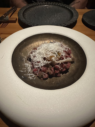 I had the wood fired scallops and the bone marrow and tartare. Both were fantastic. I thought the bone marrow would be mixed into the tartare (thatâs how I read it), but it came out as beef tartare with a side of bone marrow. Unexpected but a happy surprise. Scallops had a nice almond paste of sorts with a pineapple sauce that was delicious.