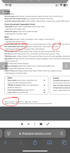 As a warning to other people with allergens please avoid Baker's Bistro. I was violently ill after eating a gluten dish that was marked as gluten free on the menu. On confronting the staff the next day, they advised they decided to change the GF dish and “try new ingredients” (with gluten). The chef should be fired immediately for this breach. Baker's Bistro should also consider itself lucky that I didn't have a peanut allergy and you gave me peanuts and killed me. There has been many cases documented in Australia and the world over where a peanut allergy person has eaten a restaurant meal that said peanut free and it wasn't peanut free and they died. So you need to accept that this is a serious incident and the One Star review needs to stand as a warning to people with allergens. Note, the food, the staff, and the environment are great and of excellent standard if you do not have an allergen. Perhaps the restaurant needs to abandon its allergen dishes and simply stick to meals where it doesn’t have to worry about allergens. Allergens are a serious matter when it...