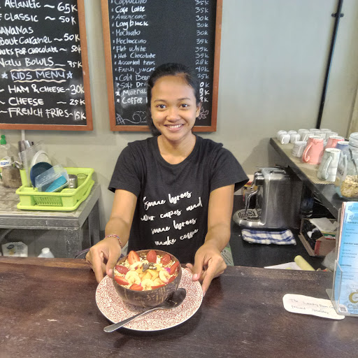 This is one of the most relaxing places. You get your things done (they do it for you) and it's real coffee and the staff is amazing. The owner wasn't there and the staff were very good and also talking positive about the owner. I always ask staff in Bali how they are treated and how much they earn because I don't want to give my money to places where the boss takes it all and the locals are mistreated. The staff in this little laundry cafe all said that the owner treats them well and that they are thought of before the profit. So that's a real positive, too. And they said it happily. Owner I don't know if you read this but great you are treating the staff so well. Bali needs more of your kind your place is super cute and that in combination makes the atmosphere...