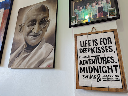 Recommended lunch spot by another local business as a go to for lunch. Was craving a good quality salad packed roll ... Did not disappoint with a REAL fresh, crispy baguette. Corn beef, bacon, egg are your protein options or get a great vego salad. No chicken or other meats available. They pride themselves on their home cooked corned beef which is super lean and fresh. Lots of options like fresh baked muffins, snacks and sides on offer. Iced coffees and milkshakes looked amazing! Everything made fresh to order. We got two fresh squeezed mix juices which were so delicious and refreshing and a bargain RP 1,800 ea! We were welcomed from the heat with ice cold towels (yes!!!) The walls are proudly adorned with family artwork portraits. Read the story (see pics) and your heart will be warmed. Note * they are super particular about cleanliness, quality and preparation of produce. Very popular amongst locals and visitors and feel good knowing you are supporting a hard working Balinese family. Good...