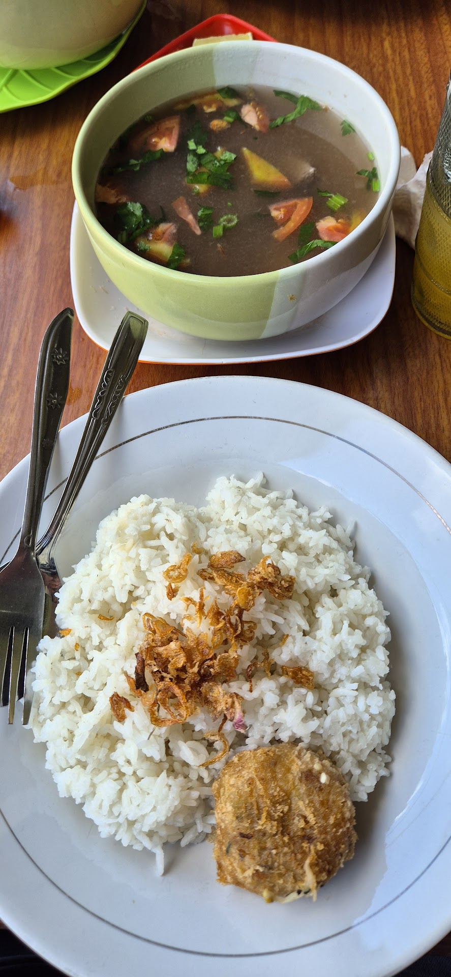 Though it was a hot day, I have choosen the Beef Soup for lunch along with a few condiments like deep fried beef's lung and one of my favorite Indonesian food, perkedel. Which is basically Potato Fritters cooked the Javanese way.
