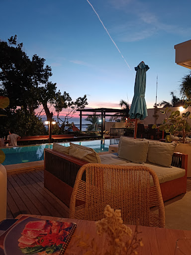 Un be known to us initially there is, upstairs, also a lovely bar with chairs and tables adjacent to a beautiful infinity pool probably 7m by 2m in size. Not a pool for swimming but rather to cool off and take in the awesome ocean view.