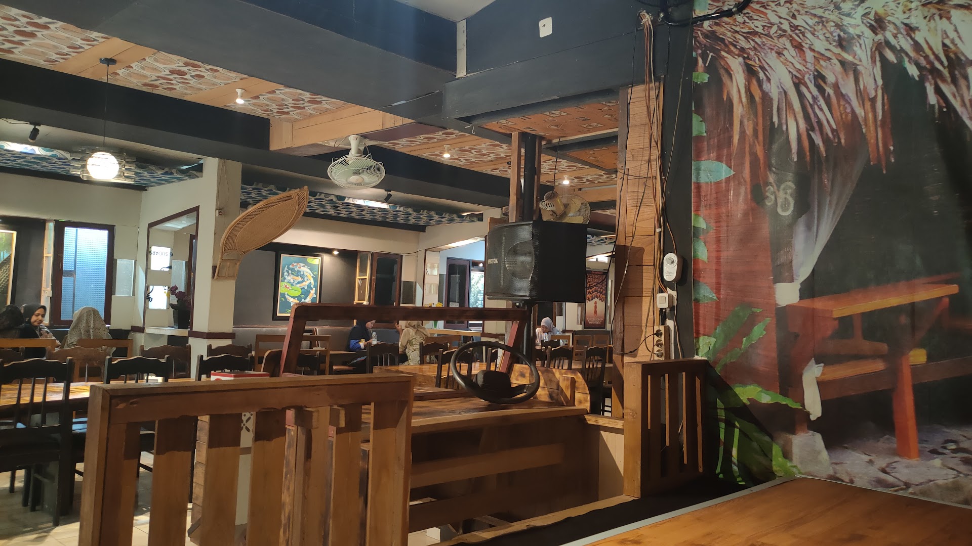 Tempat ini memang untuk tempat nongkrong anak muda. Di setiap meja disediakan asbak. Di dinding juga ditempeli banyak poster/wallpaper film, lukisan dll. Ada tv yg terhubung dg youtube dan jg speaker besar. Sayangnya tempat ini tidak dilengkapi dg ac, hanya kipas angin. Untuk makanan dan rasa, biasa saja, tidak begitu istimewa. Kami memesan soto betawi ayam, untuk rasa standar. Tahu dan tempe mendoan kurang begitu enak, hanya garing saja, penuh tepung. Tidak direkomendasikan untuk mengajak anak...