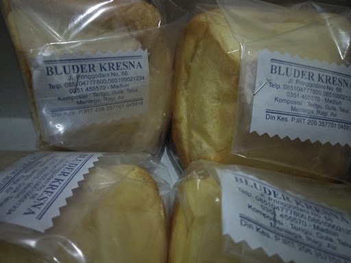 Read moreBluder di sini enyak banget! Lembut pula tekstur rotinya. Ada tiga rasa yang ditawarkan oleh Bluder Kresna. Yaitu original, coklat (meses), sama keju. Eh, kalau yang ada kismis itu masuk original atau itu rasa sendiri? Lupa lagi wkwkwk. Kalau kismis sendiri, berarti total ada 4 varian rasa. Saya sih paling suka yang rasa original. Di situ kita bisa rasain keaslian rasa bluder yang sesungguhnya. Ya Tuhaaan lembutnya itu lho benar-benar mulus menggoyang lidah. Nah, kalau istri saya favoritnya yang rasa keju (maklum doi termasuk kids jaman now alias generasi milenial). Jenis keju yang ada dalam bluder ini pun enaaak, tapi lebih enak lagi kalau kejunya lebih banyaaak. He he he. Pengen lagi deh beli bluder di sini. Apalagi pas masuk udah kecium tuh aroma ala roti yang tadinya kita udah kenyang langsung laper lagi gara-gara pengen melahap ini roti. Cocok nih buat oleh-oleh untuk teman, saudara, keluarga di luar Madiun. Katanya bluder bisa tahan sampai 1 minggu dari pembelian. Lumayan kan buat...