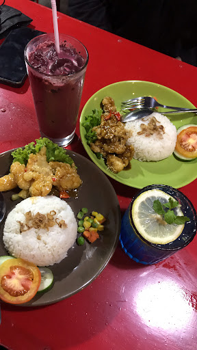 Nasi Ayam Asam Manis: 20K Strawberry Iced Tea: 15K