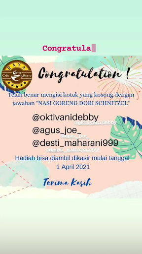 ย ย ย Read moreMakan di Raya Resto bareng teman, sahabat maupun keluarga sangat menyenangkan. Pelayanannya sangat ramah, harga standart, makanannya pun sangat enak dan juga higienis, selain itu dilengkapi fasilitas yang sangat memadai, mulai dari tempat duduk nyaman, terdapat sofa bahkan tempat duduk untuk bayi pun tersedia, lalu ada ruangan untuk meeting dan semua ruangannya pun full AC semua, lalu ada kamar mandi, WiFi, dan tempat parkir. Btw Raya Resto sering mengadakan give away juga lho..!! jadi no tipu-tipu nih, untuk buktinya aku posting juga nih biar pada percaya. Raya Resto pokoknya the best...