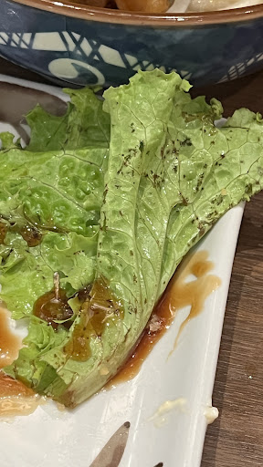 Seladanya juga sudah layu dan ada bercak hitam, seperti di foto ini. Apakah selada dalam kondisi seperti ini masih layak disajikan? Semoga ke depannya lebih diperhatikan supaya tetap fresh.