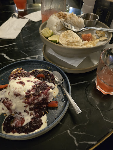 we came at night, seated on smoking area, it was so dimly lit it makes my eyes tired sitting there too long. we ordered soto betawi, didn't taste like soto betawi at all. spaghetti carbonara same case didn't taste like carbonara. mille crepes.. the crepes tasted weird, barely ate it. tiramisu barely ate it too. all the food came before the drink, we're half way through our dinner but our drinks still yet to come.