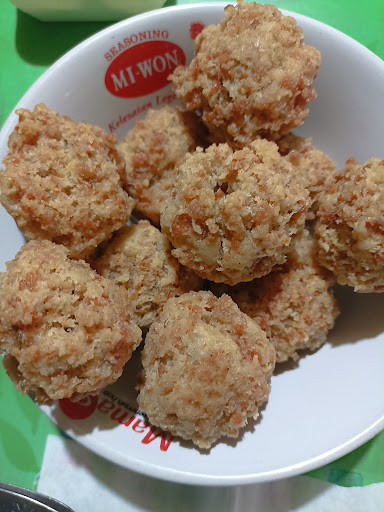-Gorengan bulat Rp. 28.000. Gorengan bulat yang biasa ditemui di mie kering khas Makassar. Menurutku, gorengan the best, paling enak yang pernah saya makan di Makassar. Isi 10 biji, udang ayamnya terasa. Meski agak keras tapi tetap kriuk dan kenyal di dalam, dimakan dengan sambel tumisnya sangat cocok.