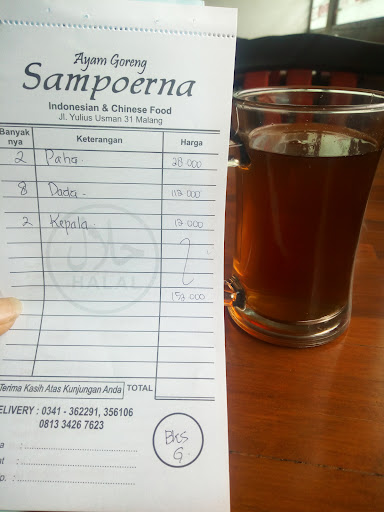 Read moreSaya tahu rumah makan ini dari ayam goreng yg saya beli dari super market. Ayam goreng yang sangat enak dengan sambalnya yang sedap. Iseng2 browsing di google map ternyata ada rumah makannya. Jadilah saya ke sana. Rumah makan lawas dengan masakan masakan lawas yang lezat. Saya selalu memborong ayam gorengnya yang istimewa untuk dibawa pulang ke Surabaya. Silakan mampir ke resto ayam goreng Sampoerna bila mampir ke Malang. Sangat direkomendasi untuk untuk ayam goreng bumbu jawa lovers. Rugi tidak mampir dan menyantap ayam goreng...