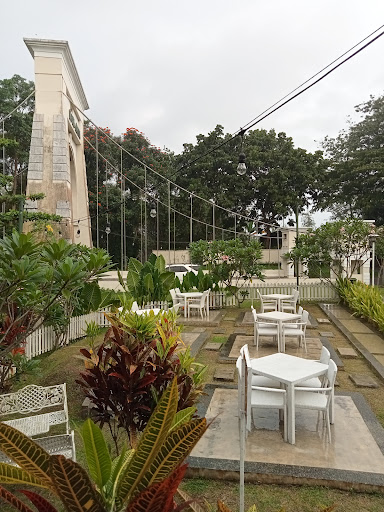 Many potential photo backgrounds at Bataputi Coffee House. The most favorite is the outer part of the cafe, which has white rattan tables and chairs. We can take photos with 3 backgrounds at once: a wooden gazebo which is part of the smoking area, the Bango River and the trees on its banks that divide Araya Housing, and the magnificent Araya Bridge. Now the chandelier that adorns the Araya Bridge lights up brightly before night falls. Not only does it add to the coolness of your photo background, but it also makes the night atmosphere warm and romantic!