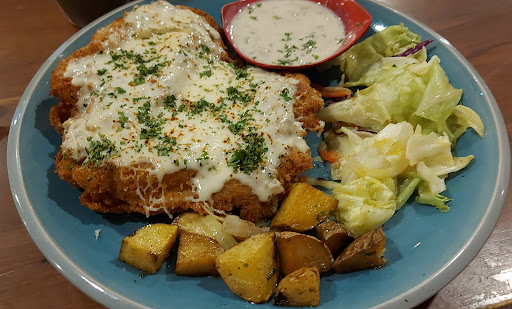 Some reviews stated that this place was previously located in quite small space. In this new location, the place is quite spacious. I'd suggest to choose outdoor table, because the lighting and ambience feels cozy. My sister and I ordered 2 different menu and the same beverage: Fish and Chips (with mayo sauce), Chicken Mozzarella Mushroom Sauce, and Ice Lychee Tea.