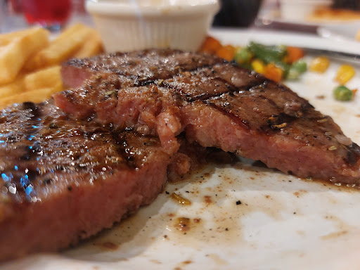 Read moresteak kaki lima terworth it! murah2 dan ada promo mahasiswa nih. tempatnya bersih, rapi, walau agak sumuk tapi tersedia kipas angin. steaknya digrill di atas jadi ga bikin tempat makin sumuk. tersedia baby seat, wastafel, cermin, sabun dan tisu. jarak antar meja cukup luas. iced lemon tea tidak kecut, seger. saladnya sedikit membingungkan isinya selada, wortel, jagung, nanas kaleng, jeli yang agak aneh rasanya dan croutons. kombinasinya kurang cocok menurut saya dan dressingnya kurang. mixed veggienya pas, gak overcooked. french friesnya mantap sih ini golden brown dan gendut2. saos blackpepper enak, tidak overpower rasanya. saos mushroom ga berasa mushroomnya. paling recommended saos samyang, agak pedas, enak dan unik rasanya. tower steak yang terdiri dari 5 tumpuk bisa direquest dengan tingkat kematangan yang berbeda2, mantap banget mana harganya murah pol! tiap meja disediakan tisu dan lilin. untuk saos sambal, saos tomat, lada dan garam tersedia di meja belakang. stuff ramah dan...