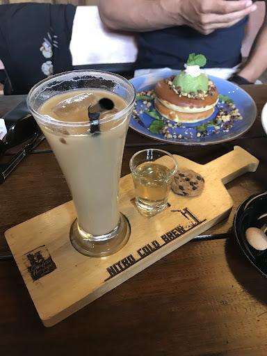 Spacious cafe/coffee roaster with mediocre food. The coffee were great and they have a large selection of Indonesian and international coffee for a great price. Various types of brewing as well. We ordered Nitro Latte and Americano—both tasted great and not bitter nor sour. For food we ordered Spaghetti Bolognese and Green Tea Pancake. They were quite bad. My spaghetti tasted so plain despite being cooked well, and my bf’s pancake was too thick it honestly looks more like dorayaki. The green tea ice cream tasted ok tho and their presentation was great for both dishes. So many Instagrammable spots in this cafe. It might get a little hot inside as there’s no aircon (or maybe it was turned off when I came). Price wise, a bit higher than other cafes in Malang but coming there from Jakarta I think it’s...
