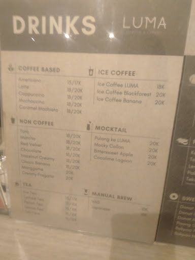 Read moreHarga terjangkau, aku pesan ice coffe luma sama latte rasanya lumayan enak cuma gelasnya itu yang terlalu ramping hehe, untuk makanan aku pesan bakmie yamin rasanya enak bangetttt aku sangat merekomendasikan, dan nasi goreng merah juga enak, ada mix plater juga dengan harga 27k bisa dapat chicken wing, kentang, onion ring, dan dimsum goreng, rasanya enak worth it lah, karena pengalaman aku dengan harga yang lebih mahal di tempat lain itu gak bener rasanya. Jadi so far untuk makanan yang aku coba baik maincourse atau snack nya enakk worth it. Untuk tempatnya aku kesini karena ada nobar final piala presiden arema vs borneo, emang tujuan kesini buat nobar , tempat duduknya nyaman buat nobar tapi sayang ada bau tidak sedap dibagian depan dekat parkiran kayak bau (selokan) jadi bikin gak nyaman, ada ruangan indoor juga, parkiran bayar. So far sih buat nongki enak dan nyaman serta pelayanan sangat ramah, oh iya ada photobooth juga tapi aku gak coba jadi gak bisa review. Buat kalian yang penasaran bisa langsung coba aja ke LUMA, bisa search dmaps juga....
