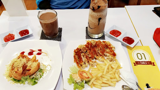 Ini cafe yang sangat prestis! Pertama kali berkunjung kesini, sangat kagum dengan desain interiornya. Sangat bagus, mewah, dan kekinian. Tiap sudut atau spot selalu IGable. Bersih, nyaman, terawat dan terjaga. Meja dan tempat duduk terdesain dan tertata rapi. Pencahayaan yang sangat mendukung. Suasana yang nyaman dan tenang tercipta karena keindahan cafe ini. Suhu terjaga dengan baik, sejuk, musik yang di putar juga bagus-bagus dan update. Terdapat toilet yg terpisah untuk laki maupun perempuan, dengan kindisi yang sangat bersih. Disediakan juga mushola yang cukup nyaman untuk customer Penyambutan pelayan menjadi hal yang berbeda dengan cafe lainnya. Penyajian daftar menu yg cukup unik dan musah untuk memilih. Berbagai dessert dan makanan berat juga ada. Untuk menu ayam satai nya, aroma cukup menyengat. Campuran asam dan cabai nya terasa sekali. Apa mungkin mengadopt dari rasa saos gochujang? Untuk ice puding, saya rasa porsi terlalu banyak. Tp untuk rasa oke lah. Enak. Tapi tidak habis karena terasa neg lama-lama. Overall good sih. Untuk harga, bisa d bilang murah. Karena penyajian menu, dan rasa, serta suasana yang sangat membuat customer nyaman menjadi pertimbangannya. Pembayaran bisa dilakukan dengan cash / emoney. Order bisa juga didapat melalui gofood / grabfood. Free WIFI kenceng, pelayanan sangat ramah (kurang senyumnya sih), cepat dan tepat. Bisa juga untuk bikin kegiatan atau semacam acara-acara juga tetapi dengan reservasi terlebih dahulu. Rekomended deh. Kumpul dengan teman, kerabat, atau keluarga. Very...