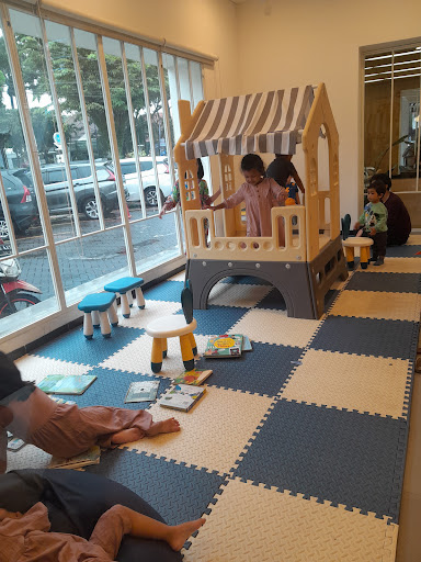 Many high chair provided, antimainstream playground that have many hi quality books for kids. Instagrammable spot in every corner, etc.