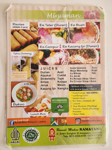 Rumah Makan Ramayana, established in 1976, is a cozy eatery with a seating capacity of 57, providing an intimate setting for its guests. The restaurantās signature dish is the Buntut (oxtail), a popular favorite that has earned a reputation among regular patrons. The culinary strength of Rumah Makan Ramayana lies in its wide variety of broths, offering options such as Buntut, Rawon, Soto, and Cap Go Meh. Each dish is deeply flavored, showcasing the rich, complex tastes of Indonesian traditional soups and stews that set this restaurant apart from others in the area. This blend of heritage and flavor makes Rumah Makan Ramayana a local gem for lovers of classic...