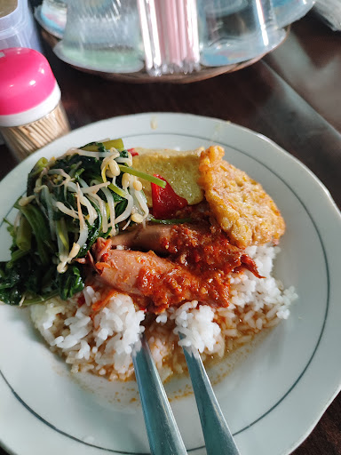 Tempatnya kecil tidak terlalu besar. Warung ini letaknya tidak jauh dari perempatan jalan yang ramai dilalui kendaraan setiap hari. Warung ini sudah ada sejak saya masih kecil dan sampai sekarang masih bertahan. Dulu masakannya enak sekali tapi sekarang agak kurang. Bukan berarti tidak enak lo. Mungkin karena sudah beda generasi yg mengelola. Kita bisa makan diwarung atau dibungkus. Harganya mulai dari 15rb. Porsinya sedikit dengan lauk yg bisa dipilih sendiri. Sayang tempat...