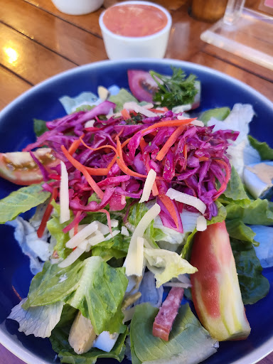 Their salad barely has anything other than veggies eventho they mentioned that there would be some meat in it but so so few. The dressing is flavorful, tangy and sweet.