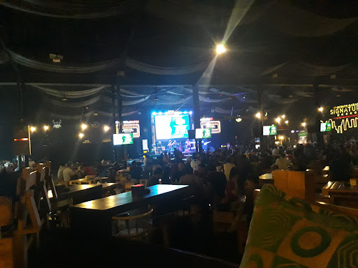 Tempat hangout bernuansa biru dan hitam, menampilkan band, DJ, sexy dancer dan blanded cocktail.