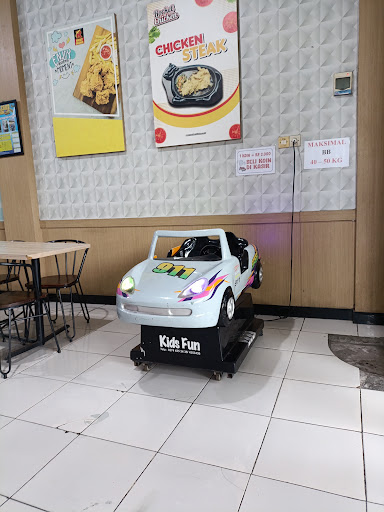 langganan makan disini. tempat parkirnya luas, cukup buat banyak motor dan mobil, walo kdng tukang parkirnya sama skali ga ngebantu. untuk ayamnya lumayan enak. pesen minuman durian float, rasanya kurang, ky minuman sachet. bgitu juga es krimnya. tempat makan nya luas, ada odong2 buat main anak bs sklian nyuapin, harga skali naik 2000, tp bentar banget....