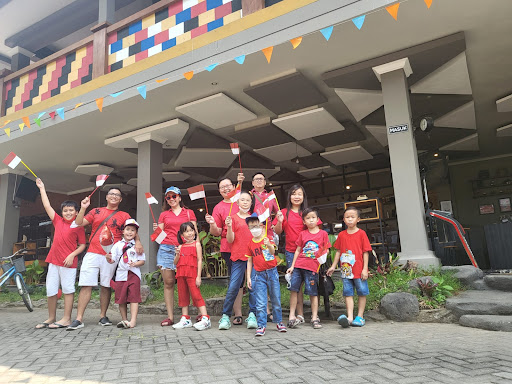 mantap sekali nongkrong disini... resto cukup luas rindang dan nyaman dibuat santai. bisa banget untuk acara keluarga reoni tunangan pernikahan dan ada panggung yg lebar dan luas. bisa untuk event besar. selain itu toilet bersih bgt. mushola juga besar dan bersih ada mukenah banyak dan sarung bnyk buat sholat berjamaah mantap. adem. disni jg nyediain private room sih kereen buat yg meeting2 butuh ruang trtutup. pelayanan ramah. selain itu ddpn nyatu sama bfc duo jd anak2 kecil gk bingung mau mesenin apa. makanan diresto ini lengkap sekali dari tradisional sampai kechaines food mantaapp. harga terjangkau yaa karena makanan berkualitas dan...