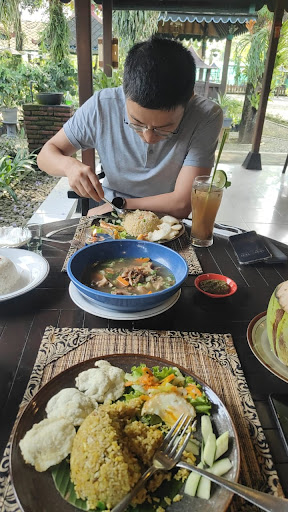 The restaurant's architecture is a testament to Javanese craftsmanship, featuring traditional Joglo-style buildings surrounded by lush greenery.