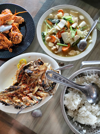 Read moreLokasi strategis di jalan Trans Sulawesi Manado - Amurang. Tidak ada halaman parkir, kendaraan parkir di badan jalan untuk jumlah terbatas. Alat musik tersedia tapi saat makan siang itu tidak ada pemain dan penyanyi. Bangunan sudah tua, banyak bagian bangunan yang sebaiknya diperbaiki. Udara siang cukup sejuk karena mendung, tidak tahu kalau panas terik. Pemandangan ke laut indah. Pantai di samping restoran nampak kotor. Pemilik restoran sebaiknya memperhatikan kebersihan pantai karena terlihat jelas dari tempat duduk restoran. Ikan bakar khas Manado dan sambal/dabu-dabu tetap...