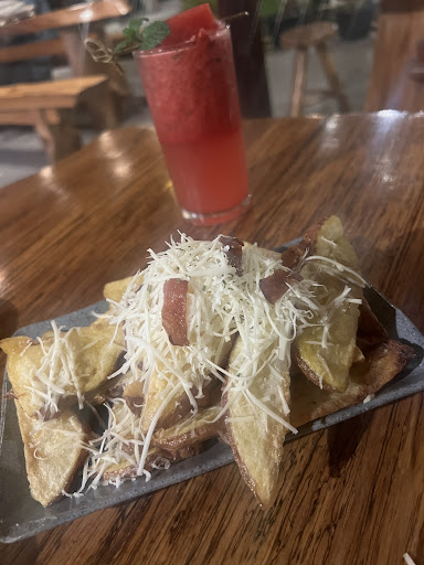 The food was similarly mediocre - “local potato with smoked beef” was potato wedges with a pile of dry cheese and five tiny flecks of thin meat on top. The “smoked beef bbq pineapple sauce mini pizza” had some bits of sausage, cheese and capsicum on top of a very store-bought pizza base.