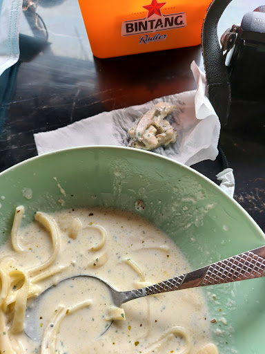 Read moreThis place probably has the best view and ambience in town. Most of the food is okay, but the mushroom in my Alfredo ruins it all. I ate the mushroom and the water coming out is sour, immediately i knew it wasn't right. I tried another piece, same thing. Tried another one from the other plate (we ordered two), same.