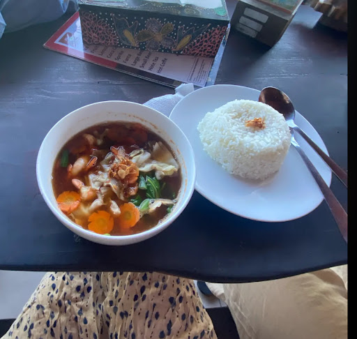 There is three menus- local menu, tourist menu and expensive tourist menu. Which tourist menu you are given is based off (I presume) the way you look and where you are from. We were given experience menu. I had cap cay seafood and rice, my partner had nasi goreng seafood. My soup was good seafood was fresh but my rice was still hard. The fried rice was the worst we’ve had in Indonesia- no flavour and dry. We asked for the bill from a different member of staff who didn’t serve us, when getting the bill we seen that there was a different menu. We also expressed our dissatisfaction for the food at this time.