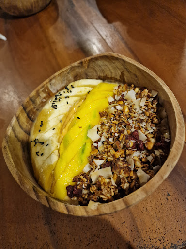 Vegan Food available here. But BE CAREFUL , there are quite a few things listed on the menu that say VEGAN but they're not ! They're VEGETARIAN as they contain dairy or eggs , so be sure to read the ingredients before ordering . They should change this really as it's very misleading . We had the Vegan Boss Burrito ; this had good flavour but it was a lot smaller than expected especially for the price of 70k . Maybe the jackfruit on the burrito made the price high? The burgers looked a lot more value for money at 40k and you can have a tempeh one. We also had Smoothie bowls here too which were actually really nice and big too ! They make the base with just fruit and no milk so you will be okay if you don't eat dairy , I did see they had soya milk in the fridge too incase you did want plant based milk . You can pay on card here and we were also able to get cash from here using our card as all the ATMs were out of service . It was a 5% charge to do this . Overall good experience just need to adjust the menu for correct Vegan options as a priority! Staff were very kind and...