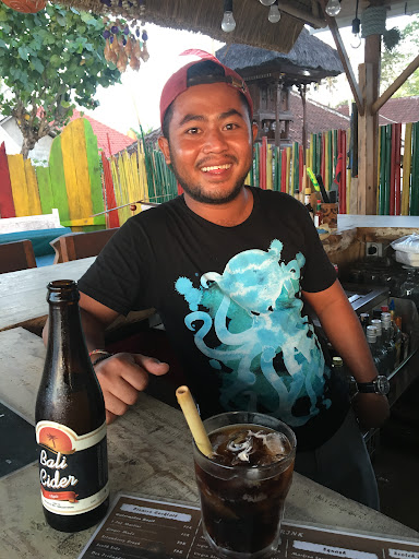 Read moreHidden gem, perfect for beachfront sundowner. Excellent food and great bartender and cocktails when you get sick of a Bintang (but they have those cold too!). Reggae vibe, eco-friendly bamboo straws yay!! Introduced them to Fat Freddyâs Drop! Warning - Can buy bottled spirits here, as we did, but once opened it was a watered down ripoff. Still had the plastic seal and sticker in tact but looked slightly cloudy colour for Absolut Vodka. He assured us it was the real...