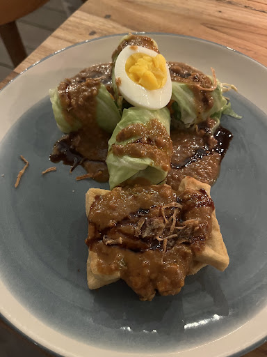 Ambiance and decor was nice. Restaurant faces the sea and it’s a good spot to watch the sunset. They also had some cocktails for 50k during happy hour. I ordered spring rolls and gado gado, two of the few vegetarian options they offer. Couldn’t evaluate the taste of food because I had a cold but the presentation was nice. The access there was not easy unless you’re on a scooter. The two servers were not very communicative or friendly, also their English was not great and they seemed unprepared. One of the servers was rude and carried a young cat outside of the restaurant by the scruff in an aggressive way. The animal was not bothering anyone. Funny to note they mention in Google that dogs are allowed. Also when I asked where I could get a taxi, they suggested that the same rude server brought me on a scooter. It sounded like a favour but she charged a lot and made up the price on spot when I arrived to the accommodation. Felt like a scam. Please invest in more friendly staff. It doesn’t take so much to...