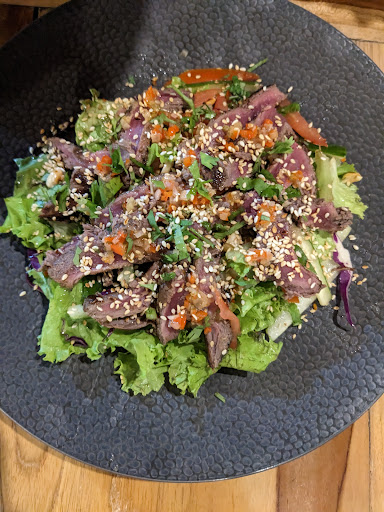 Read moreWe have been looking for an upscale dining experience and were disappointed. The restaurant opening faces the street so expect a lot of vehicle noise. Plus with no ocean breeze it is hot inside. We were quickly sat down, and ordered our meal. Dogs wandered in and sat down near us. Their continual scratching and open sores are disturbing. We have to constantly remind the staff to remove the dogs. We had not experienced this issue at any other restaurant. The food arrived and I had chosen Indonesian fare. I found it bland to my surprise, and did not eat much. My partner had tuna steak and fared much better. The desert was good. The whole dog thing was upsetting with the lackluster attitude of the staff. The menu is huge and perhaps too eclectic. Just focus on the...
