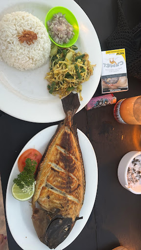 After seing soooo many flies around and after being on toilet that was super disgusting without a flush, I kindly asked if the snapper is from yesterday or today. She answered yesterday. I asked did you keep it in the refrigerator. She answered no, we don't have a refrigerator. After she saw my shocked face, she said don't worry, we put ice on it over night. I kindly asked that I have a upset stomach and if she could exchange it with Nasi Goreng. She answered, she will check with the cook. A few minutes later she came to the table and answered that I should not worry, the snapper is from today morning. I didn't want to be rude and said ok, thank you (my mistake).