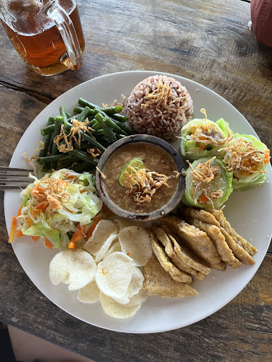 Only my partner is veggie and not me so I can say this with confidence: the Tempe satay here is better than most chicken satays Iāve had in Indonesia AND Malaysia. Thereās a chargrilled taste on the satay that Iāve only had with meat before. The sauce is 12/10 delicious. you can really taste the good quality coconut oil that the Tempe is fried in or basted with (not sure how they prepare it). We shared our food, and the gado gado is a big portion and very mixed. We also had the hand cooked chips which were incredible, fried in coconut oil and delicious. We eat quite a lot and these three dishes almost defeated us. Good portion sizes here. Good price for the excellent quality. Well worth riding out to! Peaceful surroundings in the middle of the jungle. Stunning views. Friendly staff. Wouldnāt change a thing!