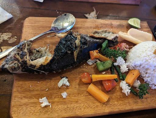 The nice ambience make you think, the quality of food and service will be great too, unfortunately it is not. This place is overrated. We asked for the bestseller pizza and extra crunchy, what we got was a very sweet and soft, not even properly baked pizza, also came much later than the other food. Easy to avoid if just told us in advance. The milkshake has no milk in it, but the smoothie has? The Chicken in sauce had not much taste and watery sauce. Ketjap Asin (Sojasauce) not available, only Sambal. Octopus grilled good, but the sweet barbecue sauce served with it, does not fit for fish at all. Waitress does her job, but no more. All together, better go somewhere else, better food...