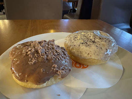 The aroma of freshly baked donuts combined with soothing music created a comforting and inviting environment. The service was friendly and efficient, making the experience even more pleasant. The establishment was clean and well-maintained, ensuring a comfortable visit.