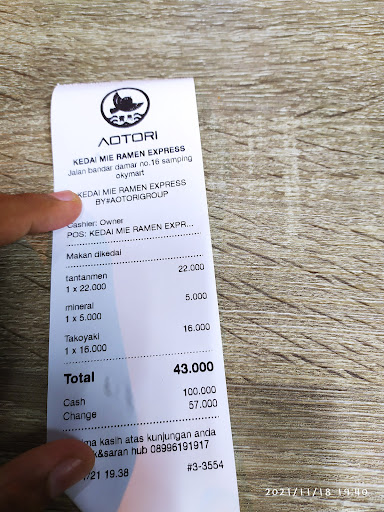 Aku ini sama sekali belum pernah makan makanan Jepang, teman². Jadi aku nyobain ini di Kota Padang, lokasinya bersebrangan dengan Warung Nasi Bandar Damar. Kenapa disini, karena dr ulasan yg kubaca di Kedai Mie Ramen AOTORI yg asli (yg pertama) itu katanya rame kalo malam jd takut ngantri lama yaudah kesini aja. Aku pesan Tantanmen, rekomendasi dr pelayannya. Pdhal pengen Kari Udon, ternyata di AOTORI EXPRESS belum menyediakan menu Udon, hanya ramen. Kalo side dish seperti Takoyaki, Katsu,dll tersedia kok. Bisa makan diluar atau makan di dalam ruangan. Cukup besar sih tempatnya, satu ruko gitu. Minuman jenisnya banyak salah satunya Mojito yg hits disini tapi berhubung aku tidak suka minuman manis² aku pesan air mineral.